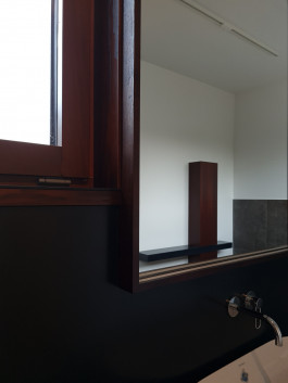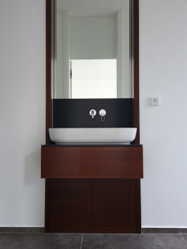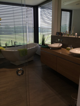 Waschtischanlage in Eiche mit Glasdeckplatte